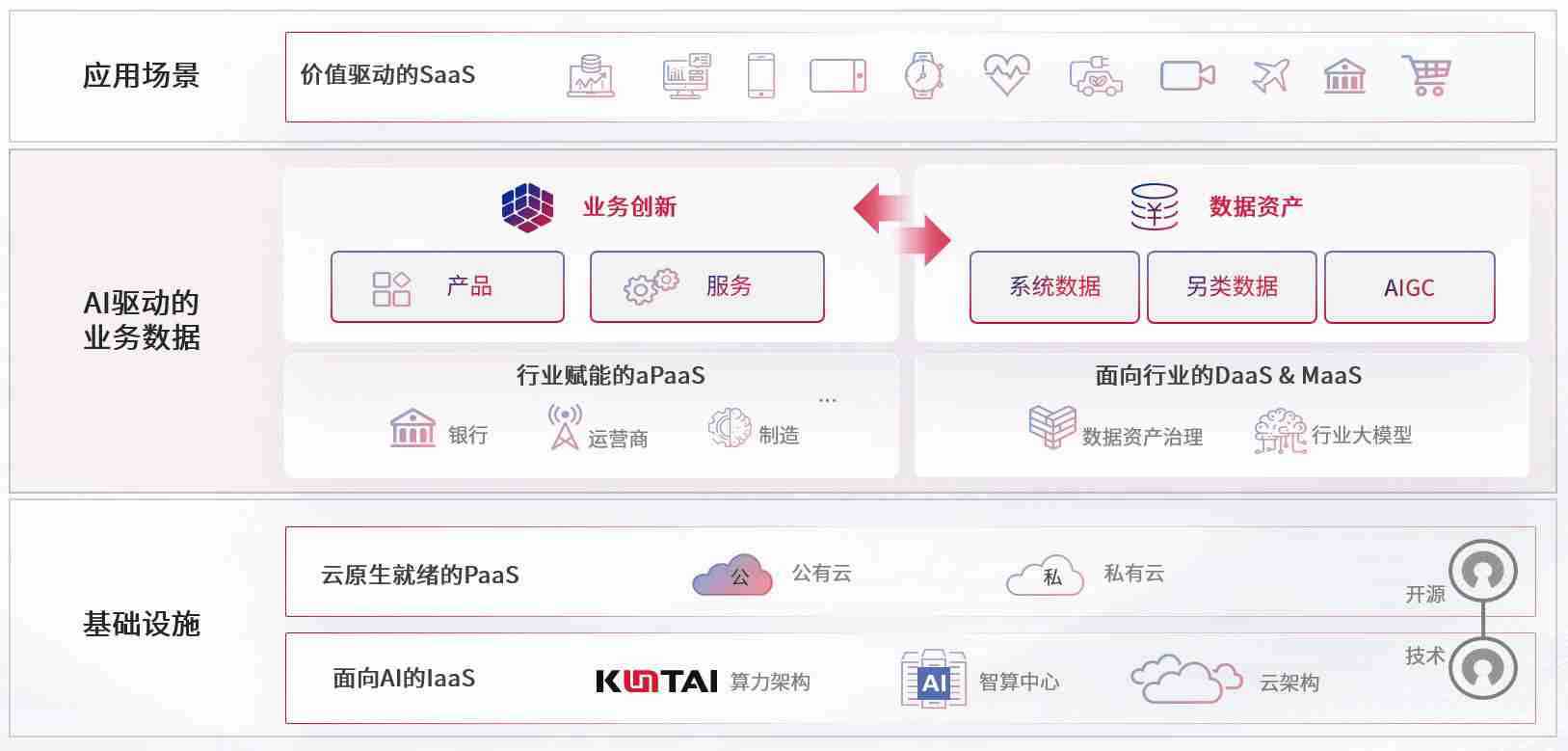 数字时代,,,围绕企业数字化转型的关键要素,,,彩神vll数码开创性的提出数云融合战略和技术体系框架,,,,着力在云原生、、数字原生、、AI原生和信创产业上架构产品和服务能力,,为处在不同数字化转型阶段的快消零售、、、、汽车、、、金融、、医疗、、、政企、、、、教育、、、运营商等行业客户提供泛在的敏捷IT能力和融合的数据驱动能力,,,,构建跨界融合创新的数字业务场景和新业务模式,,,助力企业级客户建立面向未来的核心能力和竞争优势,,全面推动社会的数字化、、、、智能化转型升级。。。。